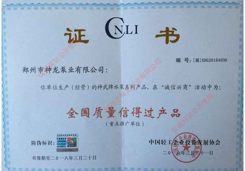 全国质量信得过产品